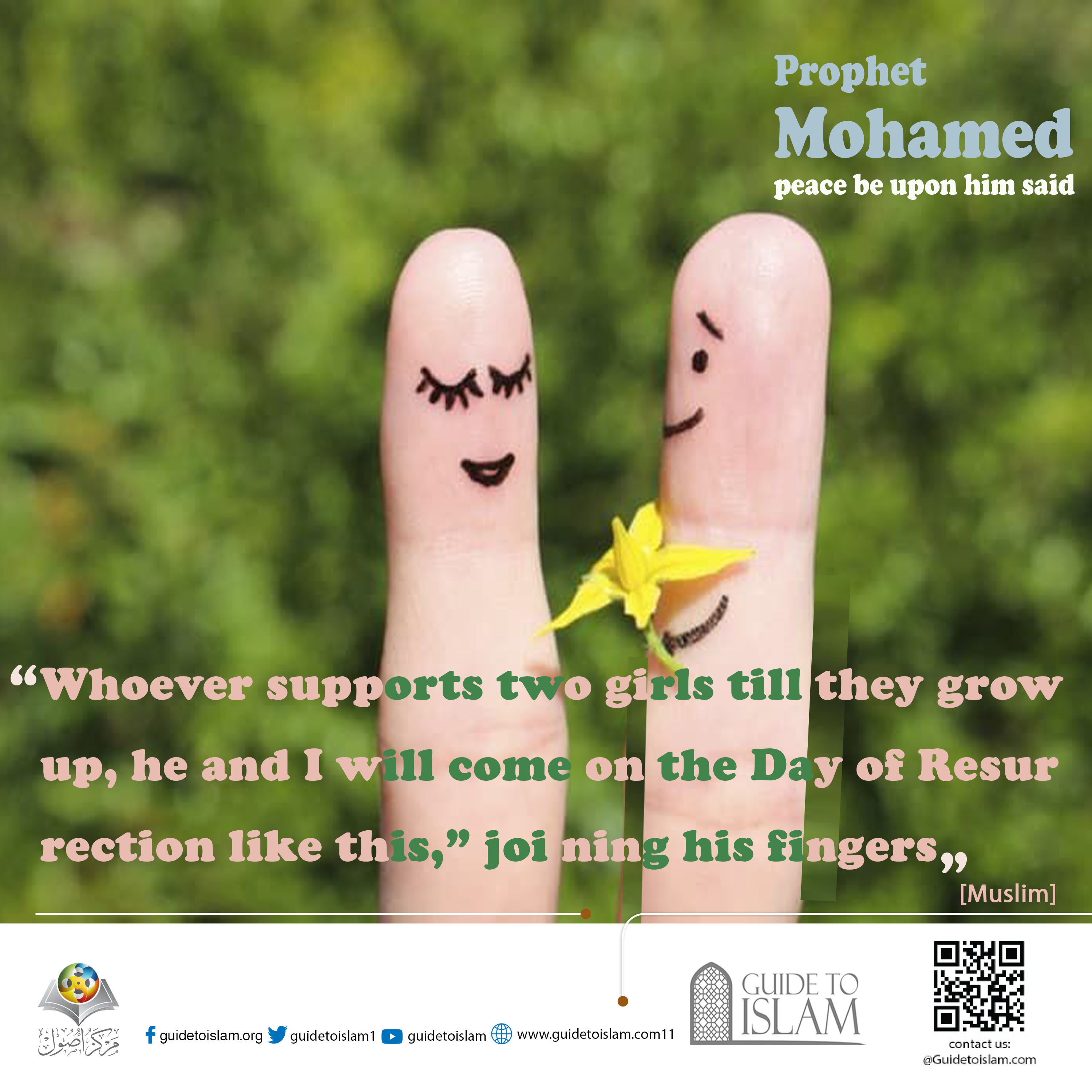 " Whoever support two girls till they grow up, he and I will come on the Day of resurrection like this," joining his fingers"