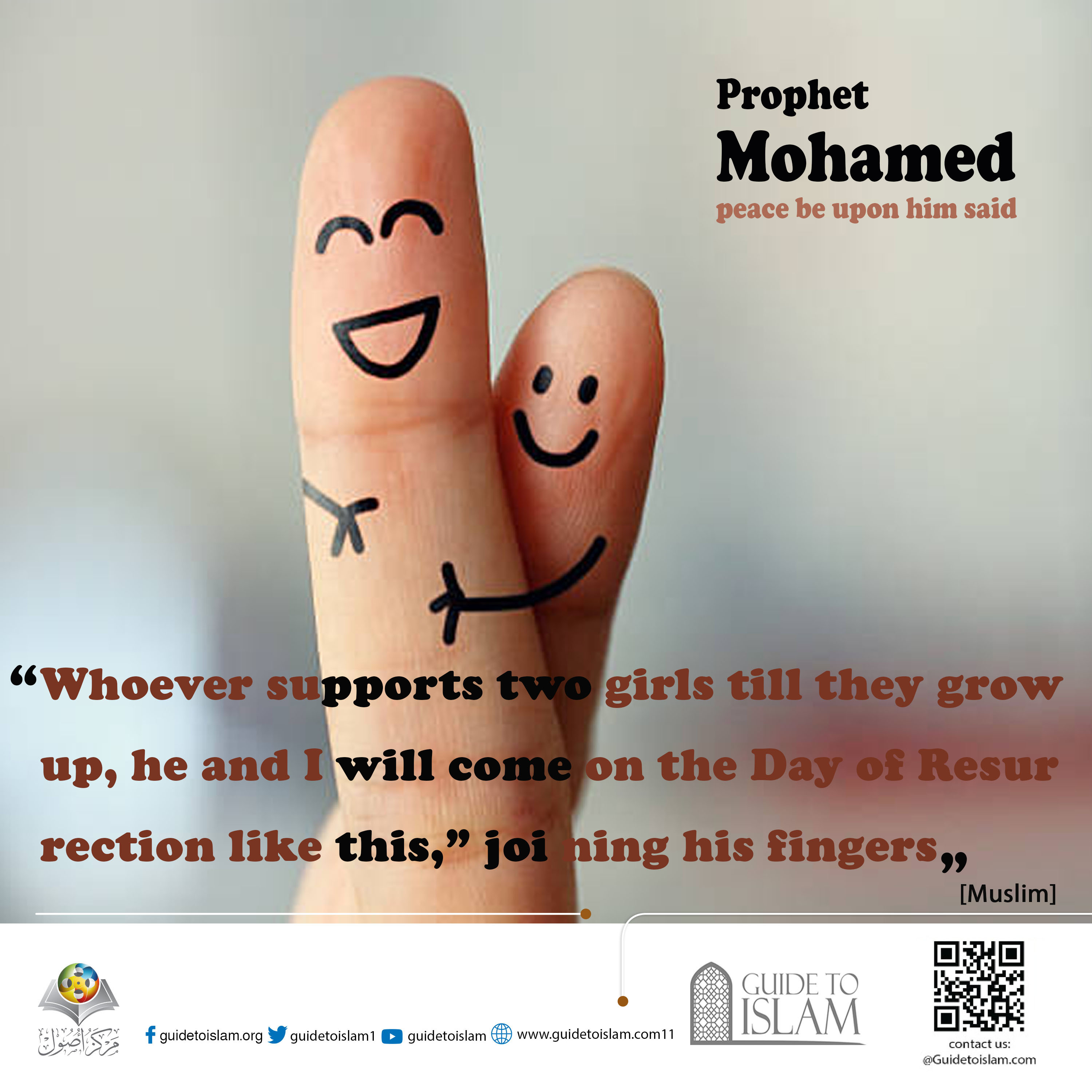 " Whoever support two girls till they grow up, he and I will come on the Day of resurrection like this," joining his fingers"