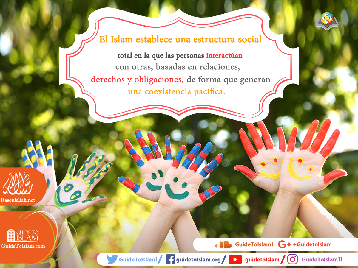 El Islam establece una estructura social total en la que las personas interactúan con otras, basadas en relaciones, derechos y obligaciones, de forma que generan una coexistencia pacífica.