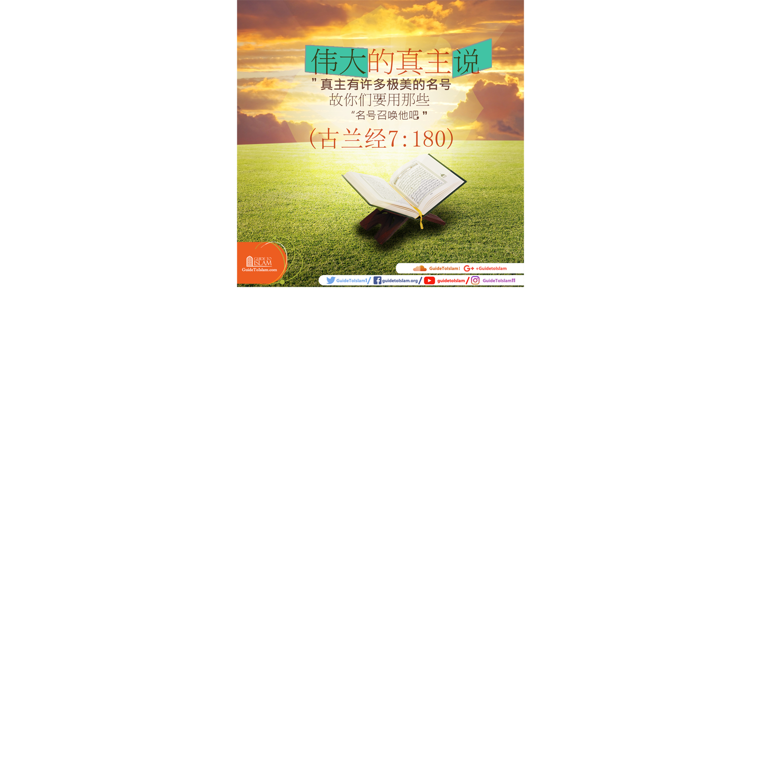 伟大的真主说:“真主有许多极美的名号,故你们要用那些名号召唤他吧”。(《古兰经》7∶180)你可以从这里学到更多关于真主的信息……